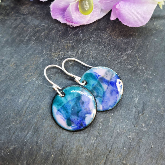Abstract Colour enamel marquise drop earrings - dark blue & green