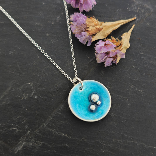 Silver & enamel Abstract Lines Spray Pendant necklace