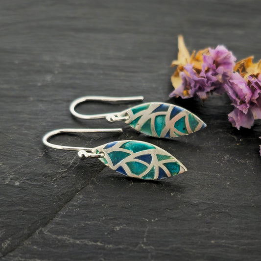 Silver & enamel Falling Leaves stud earrings - turquoise