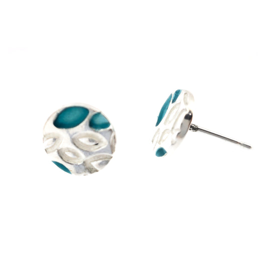 Silver & enamel Falling Leaves stud earrings - turquoise