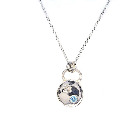 Silver December Birthstone Pebble pendant necklace - blue topaz & poinsettia