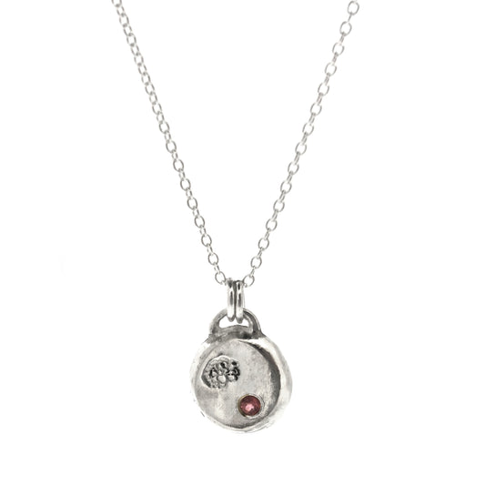Silver October Birthstone Pebble pendant necklace - pink tourmaline & marigold