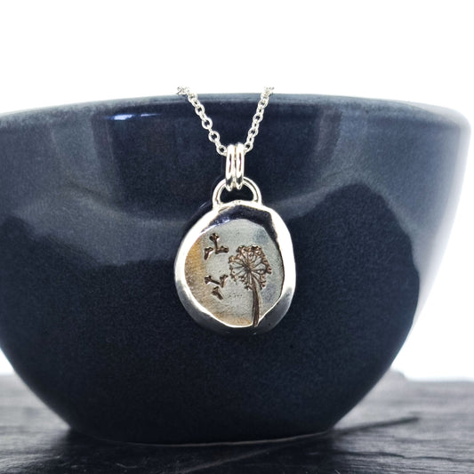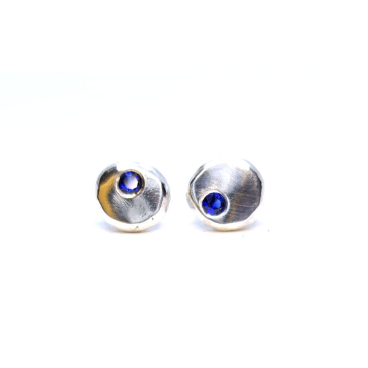 Silver September Birthstone Pebble pendant necklace - sapphire & morning glory